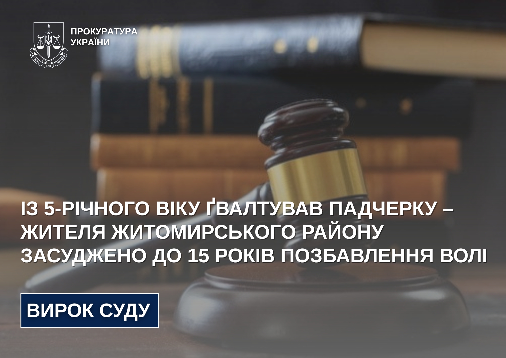 Із 5-річного віку ґвалтував падчерку – жителя Житомирського району засуджено до 15 років позбавлення волі